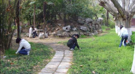 3月30日,阳光明媚,春意盎然,计算机学院04学工二支部组织党员和党校新学员为三牌楼校区清除垃圾,净化校园。