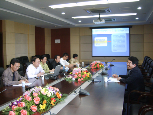 陈鹤鸣教授代表教务处、高教所、教学质量监控与评估中心向黄维副校长汇报了在学习实践科学发展观第一阶段中的学习情况和开展的主要工作,分析查找了发展中存在的主要问题,并汇报了拟采取的解决措施。针对黄副校长提出的以科研促进教学的希望,将在今后的教学管理和服务工作中进一步以教学工作为中心,以高水平科研为支撑,为完成高等学校人才培养的使命、提高人才培养质量努力。