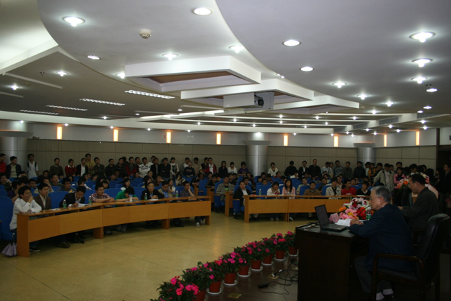 陈院士的报告从对我国网络发展概况的简要概述开始讲起,通过对用户数量、带宽、流量等一系列指标的横向与纵向分析对比,揭示了一个庞大的、复杂的、有极大发展空间的中国网络市场。陈院士在光通信技术、移动通信、下一代互联网CNGI、下一代骨干网络NGN以及传感器网络等几个不同的方面从原理、应用以及目前研究进展等进行了报告。在报告会上,陈院士展示了大量图片,形象生动地介绍了国内外在通信网络软硬件方面的研究进展及研究成果。整场报告历时二个半小时,内容深入浅出,精彩生动,吸引了大量的教师及研究生入场倾听,整个报告厅座无虚席,甚至连走廊处也挤满了听众。陈院士还就一些具体问题与大家进行了充分的交流。