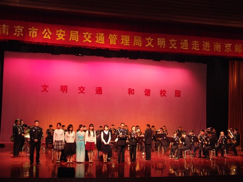 2008年4月24日下午,南京市公安局交通管理局文明交通走进南京邮电大学,以“文明交通和谐校园”为主题的音乐会在大学生活动中心礼堂隆重举行。本次音乐会由南京市公安局交通管理局和南京邮电大学保卫处、团委、学生处联合主办,保卫处季小健处长、李农副处长、校团委张翼书记等出席。