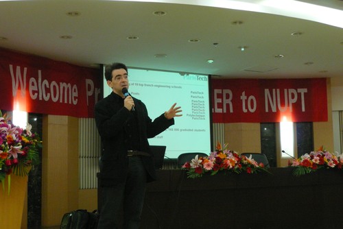 近日,应邀来校访问的法国巴黎高科(ParisTech)教授Benoit GELLER在我校三牌楼校区科技报告厅就当前无线通信领域的热点前沿问题,举行了题为“From Block turbo codes to turbo synchronization”的学术报告,并介绍了巴黎高科通信大学的情况,欢迎中国学生前去学习和深造。海外合作与交流处、通信学院的相关人员参加了学术报告会。会后,Prof. GELLER参观了通信实验室,与信号处理研究院的教授、研究人员及博士生就共同的研究课题进行了深入的座谈,交流了一些领域的研究思路。