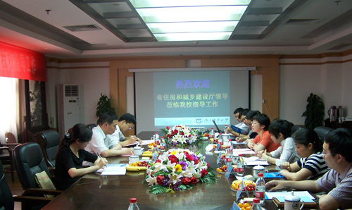 5月19日下午,江苏省住房和城乡建设厅副厅长顾小平、建筑节能与科研设计处副处长杨映红、科技发展中心副总工程师路宏伟一行三人莅临我校,对我校创建节约型校园情况进行检查指导。副校长叶美兰教授出席汇报会并讲话,校长办公室、后勤管理处、后勤服务集团等部门负责人参加了会议。