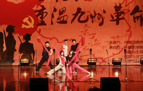 2011年5月24日晚,为****九十周年,由校团委主办,计算机学院、软件学院,地理与生物信息学院、人文学院、传媒与艺术学院分团委联合承办的“图绘多维长征路,重温九州革命魂”红色校园文化节开幕式暨校园长征情景剧优秀作品展在大学生活动中心小礼堂内隆重举行。