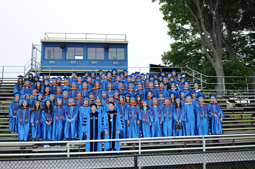 在纽约理工学院毕业典礼上,杨震校长受邀与纽约理工学院朱利安诺校长并座主席台,4000余名毕业生及毕业生家长、各界人士共一万多人参加了典礼。毕业典礼结束后,杨震校长与留美毕业生亲切交谈并合影留念。