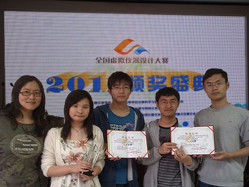 2011年5月11-15日,“2011全国虚拟仪器设计大赛”决赛在北京清华大学隆重举行,我校自动化学院学生符张杰、毛华清、张首至和通信与信息工程学院学生汪彦舒参加了软件组的决赛。比赛采用现场出题,现场编程的方式,经过激烈的现场角逐,我校最终获得软件组二等奖的好成绩。