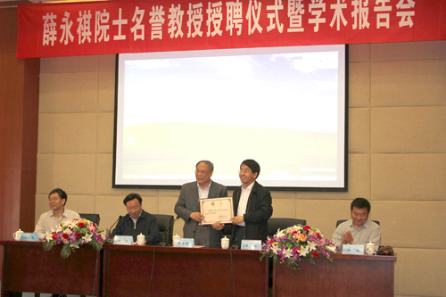 5月27日上午,中国科学院院士、红外和遥感技术专家薛永祺教授受聘我校名誉教授仪式在仙林校区行政楼一楼报告厅隆重举行,刘陈副校长主持了仪式,黄维副校长代表学校向薛永祺院士颁发南京邮电大学名誉教授聘书,黄维副校长对薛永祺院士受聘为南邮名誉教授表示祝贺和为南邮师生做学术报告表示感谢。薛永祺院士感谢南京邮电大学给予他的荣誉和信任,同时也表示,今后会为学校的发展做出应有的贡献。