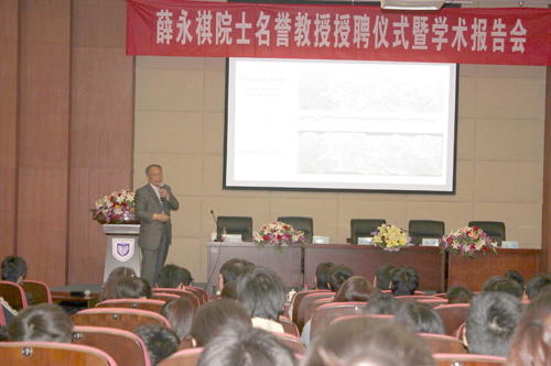 受聘仪式结束后,薛永祺院士为我校师生作了“光学遥感技术与应用”学术报告,从光学遥感器技术、高空间分辨率图像获取系统、多光谱——高光谱成像系统、激光三维成像仪等四个方面对光学遥感技术做了系统介绍和讲解,并且用大量的图片实例说明了遥感技术在多个领域的应用。薛院士的精彩报告深入浅出,使参会师生耳目一新,对于了解光学遥感技术现状和未来发展趋势等具有重要的启发意义。