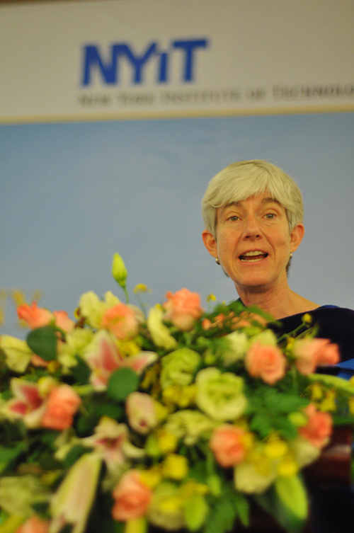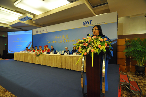 典礼在中美两国国歌声中开始,美国纽约理工学院校董会主席Linda Davila女士、美方校长Edward Guiliano博士及美国驻上海总领事Beatrice Camp女士分别致辞,肯定了两校联合培养出来的复合型人才定能顺应时代潮流,为推动中美关系和平发展做出突出贡献。