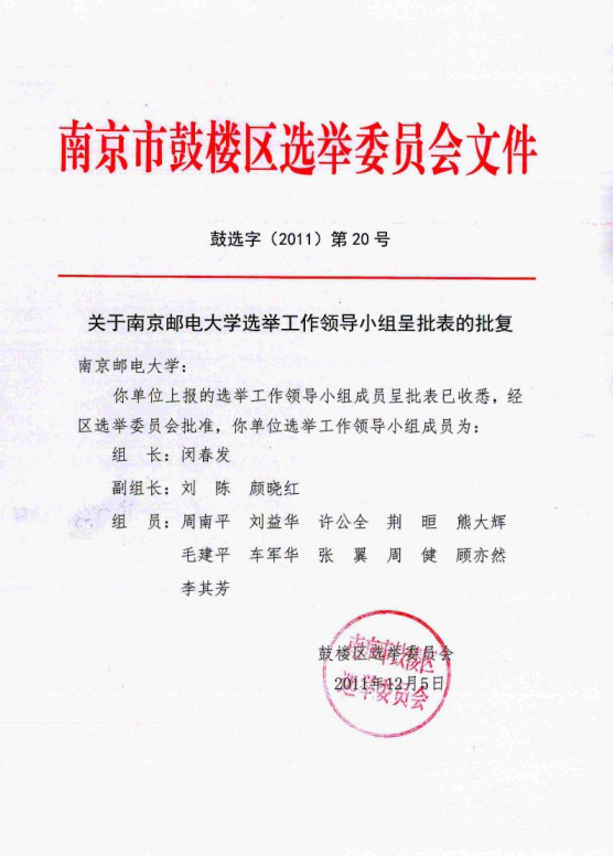 关于南京邮电大学选举工作领导小组呈批表的批复