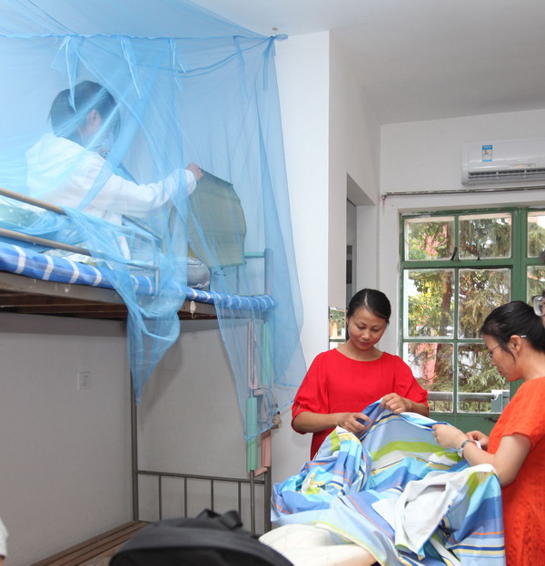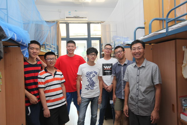 和辅导员一起在宿舍合影