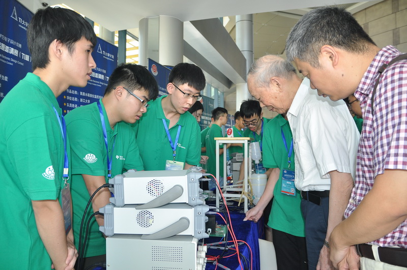 竞赛共决出一等奖10个,二等奖17个,三等奖36个,山东大学代表队捧得本次大赛最高奖TI杯,我校学子喜获一等奖1项,二等奖1项。8月30日上午,大赛优秀作品在青春剧场大厅集中展示,中国科学院郑有炓院士及竞赛专家组专家们参观了作品展,他们饶有兴致地观看和体验学生们的演示,仔细倾听学生们的想法和创意,并不时与学生们亲切交流。