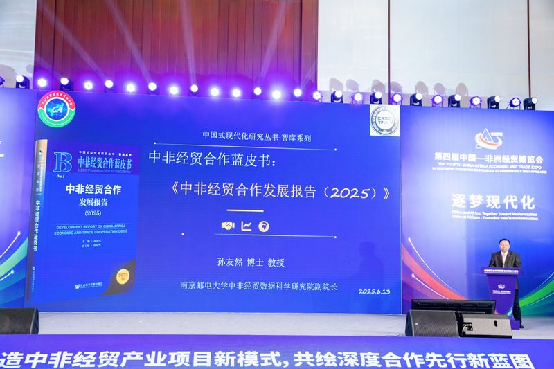 6月13日上午,第四届中非经贸博览会中非经贸合作项目落地方案推介活动在长沙举行。南京邮电大学中非经贸数据科学研究院和湖南省中非经贸合作促进研究会联合发布了《中非经贸合作蓝皮书 (2025)》和《中非经贸指数报告(2025)》两项研究成果,为全球投资者提供赴非投资决策的重要参考。