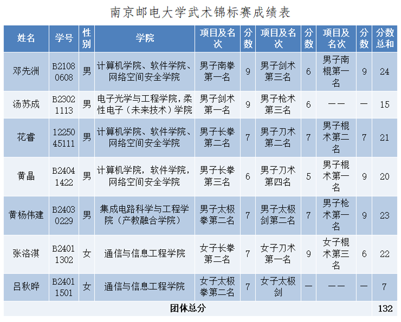 本项赛事是高校高质量发展指标考核项目中的重要赛事,共有14所本科院校的54名运动员参赛,分设男女各8个项目。南邮武术队在郭野教练的带领下,训练不避寒暑、比赛顽强拼搏,充分展示了英姿飒爽的精神风貌。