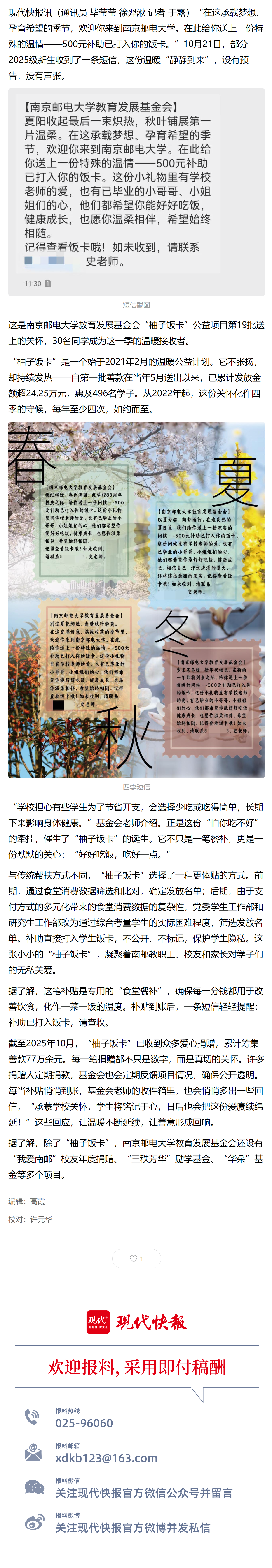 【现代快报全媒体】“500元补助已打入你的饭卡”,南京一高校悄悄给学生加餐补