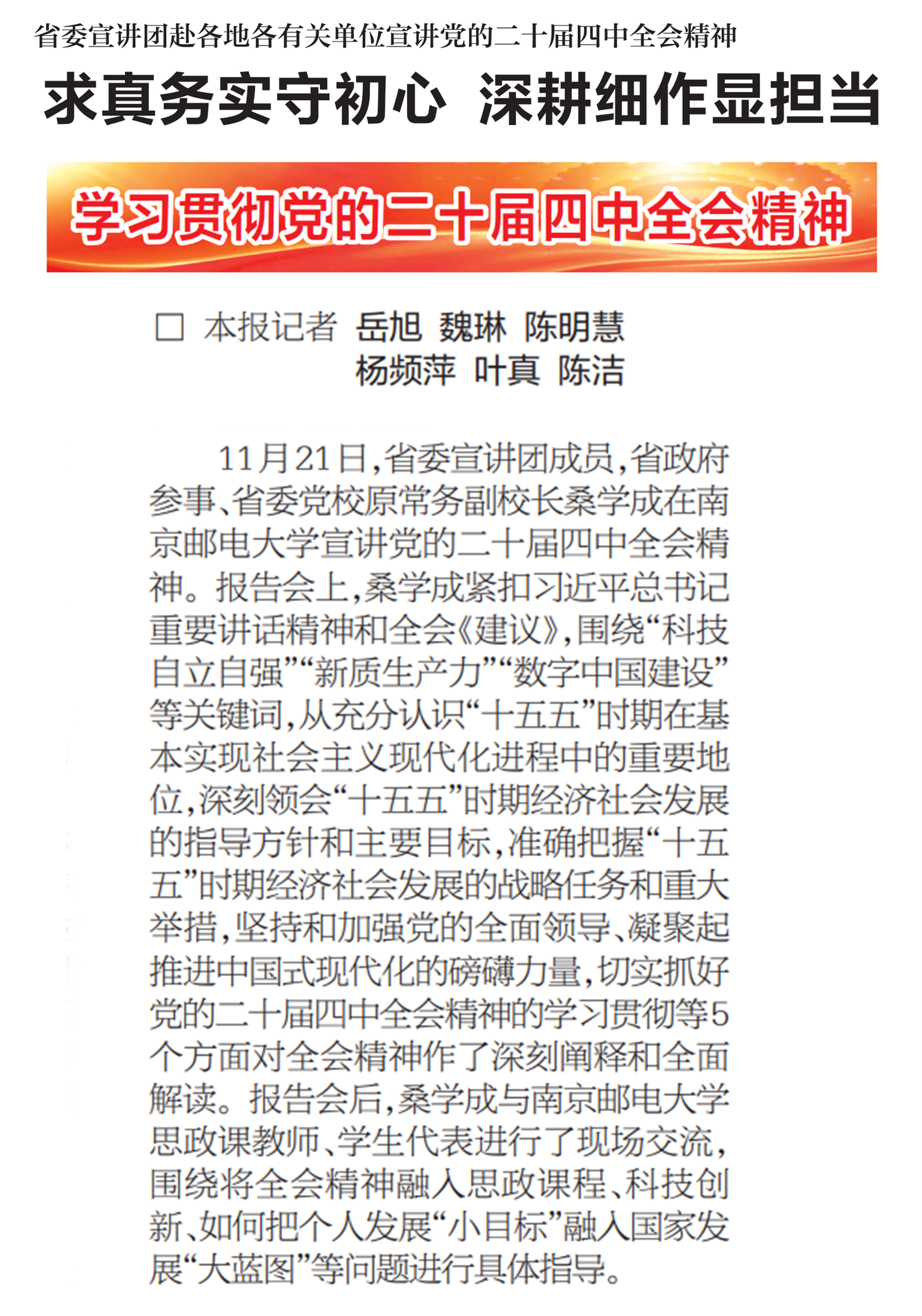 【新华日报】省委宣讲团赴南京邮电大学宣讲党的二十届四中全会精神