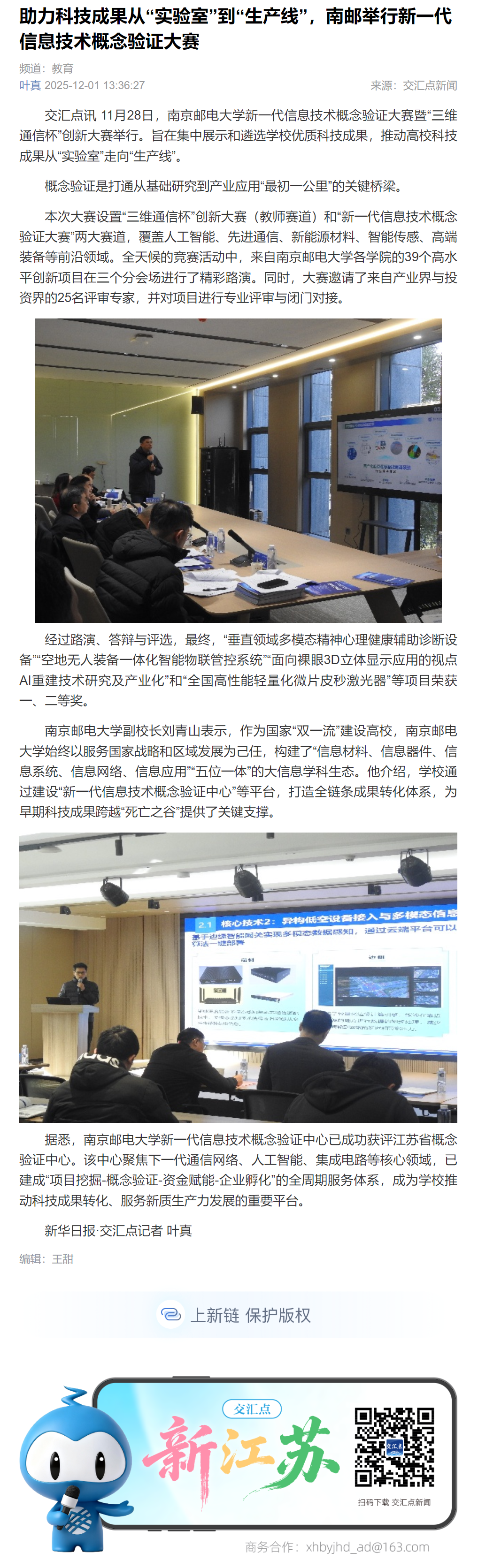 【新华日报客户端】助力科技成果从“实验室”到“生产线”,南邮举行新一代信息技术概念验证大赛