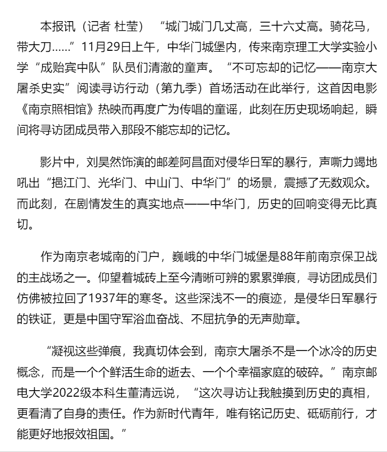 【南京日报】“穿越”城门,追寻《南京照相馆》历史真相