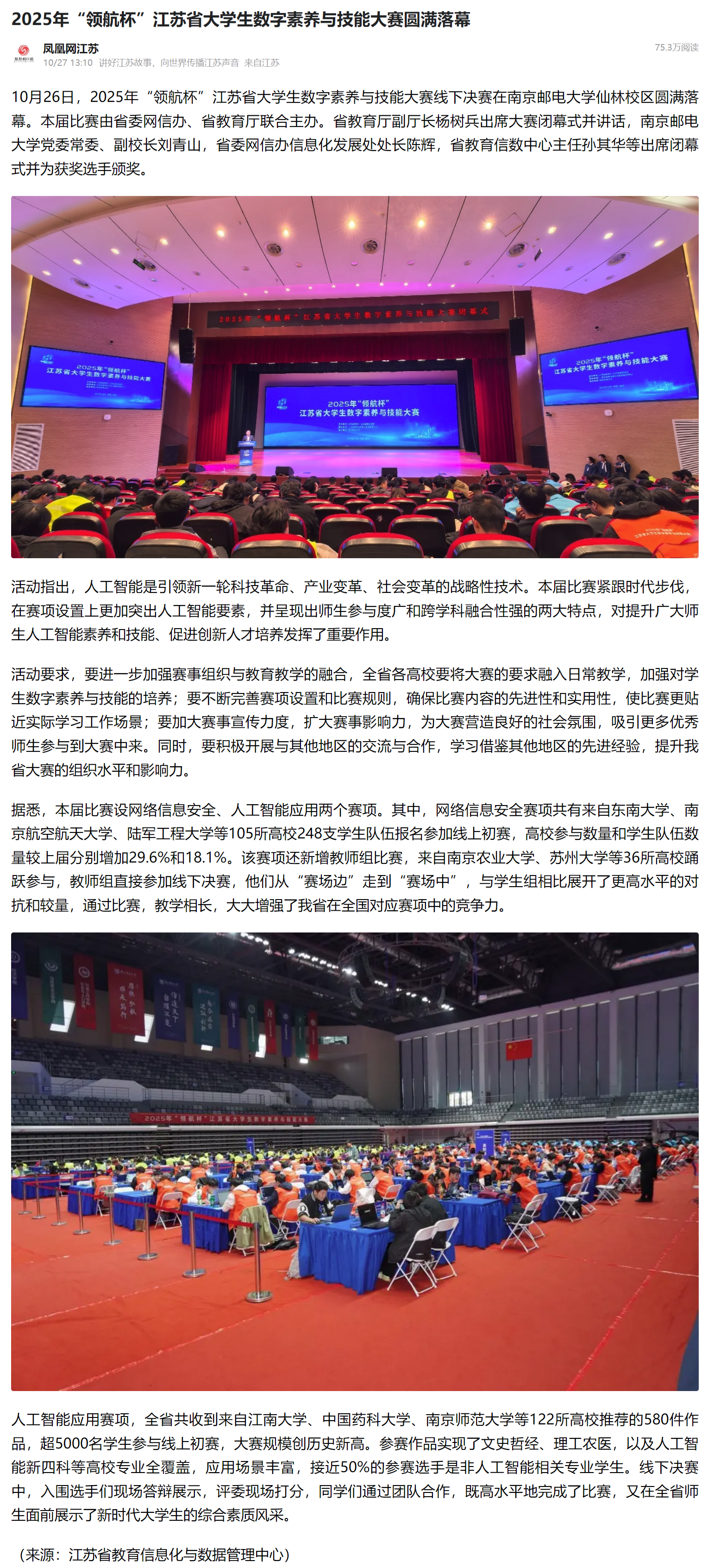 【凤凰网江苏】2025年“领航杯”江苏省大学生数字素养与技能大赛圆满落幕