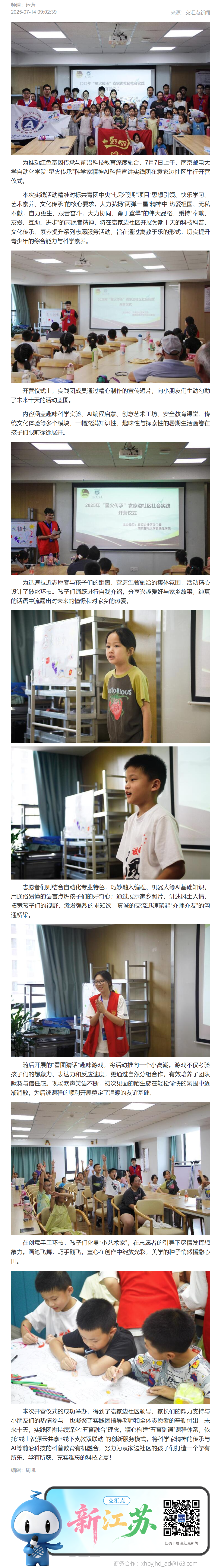 【新华日报客户端】点燃科学火种 启迪AI未来——南京邮电大学自动化学院科普实践营开营
