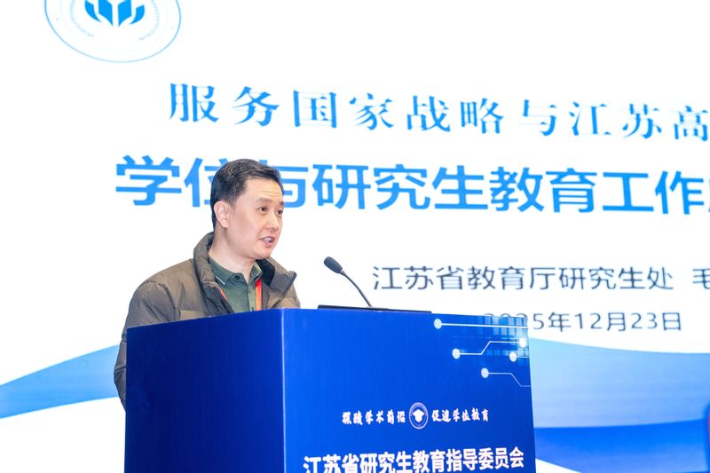 江苏省研究生教育指导委员会学术交流活动上,省教育厅研究生教育处副处长毛晓翔充分肯定教指委成立七年来在推动研究生教育改革、深化产教融合与科教融汇等方面发挥的重要作用,回顾了2025年江苏学位与研究生教育工作在“双一流”和高水平大学建设、学科专业设置优化改革、卓越工程师学院建设等方面取得的突出成效。