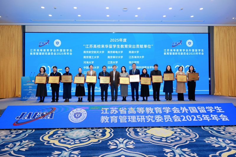 12月29日至31日,江苏省高等教育学会外国留学生教育管理研究委员会2025年年会在南京召开。年会聚焦江苏省来华留学教育高质量发展,深入分析工作面临的新形势和新任务,重点就江苏高校来华留学教育高质量发展、招生、教学、管理等方面展开研讨。会上举行了来华留学生教育奖项表彰和颁奖仪式,南京邮电大学获评2025年度“江苏高校来华留学生教育突出贡献单位”。