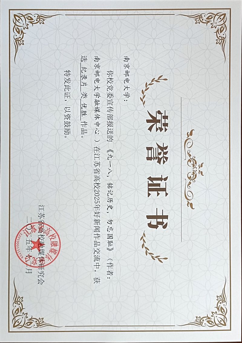 近日,江苏省高校融媒体研究会2025年年会在南京举行。大会对入选“江苏省好新闻奖”的高校优秀作品进行了表彰,并举行了江苏高校年度好新闻作品及融媒体创新案例推介交流与展示。南邮获1项融媒体创新“十佳”案例、5项好新闻作品类奖项。其中,《云矩阵 青声量 协作链——全国高校联祭创新实践》入选2025年度融媒体创新“十佳”案例,《南邮82岁的生日庆典——超燃!》获媒体融合类优胜作品,《九一八,铭记历史,勿忘国耻》获纪录片类优胜作品,《用一流课程培养新“邮”人》《南邮在世界顶尖赛事中取得突破性成绩!》获文字作品类优秀作品,《2024年05月01日第338期第03版:校庆专版》获版面类优秀作品。
