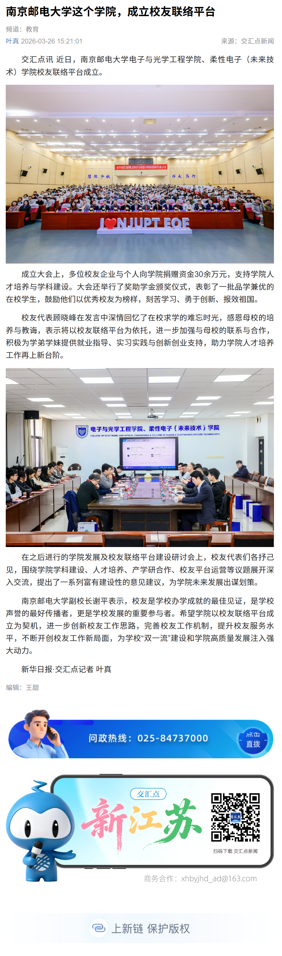 【新华日报客户端】南京邮电大学这个学院,成立校友联络平台