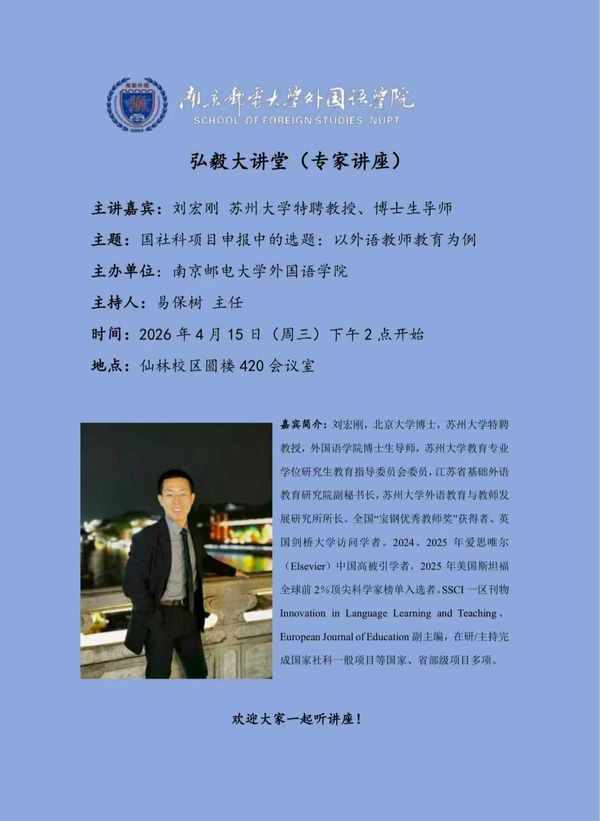 苏州大学刘宏刚教授学术讲座——国社科项目申报中的选题:以外语教师教育为例