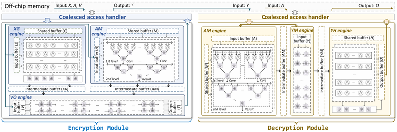 被第63届DAC 2026录用的论文Leveraging AI-Inspired Hardware Architecture to Enhance LPN Acceleration in Post-Quantum Cryptography,第一作者是南邮集成电路科学与工程学院(产教融合学院)高迎雪副教授,张吉良教授为通讯作者。后量子密码(PQC)中的LPN(Learning Parity with Noise)因结构简洁、安全性强,被视为构建高效密码系统的理想基元。但现有LPN加速器多聚焦于局部计算优化,忽视整体执行流程与数据传输瓶颈,导致硬件利用率和系统吞吐量受限。受AI加速器架构启发,研究团队首次提出面向FPGA的LPN硬件加速架构——LHPA:采用异构计算引擎、层次化XOR归约树与流式执行机制,全面优化LPN的多阶段计算与数据传输;针对LPN中多传输、单比特的数据特征,设计了合并访问处理器与阶段级调度策略,将片外传输效率提升51.16%,显著缓解访存瓶颈、增强架构适应性。实验结果表明:在Zynq UltraScale+ FPGA上,LHPA相比现有最先进的LPN加速器(PIM-LPN)实现了52.80倍的性能提升,相比主流PQC加速器(BIKE、HQC、Kyber)提升幅度达36.69倍至247.35倍;硬件平均利用率达90.71%,访存效率最高提升47.25%。LHPA是首个在FPGA上实现高效、可配置、高吞吐LPN加速的AI启发架构,为后量子密码硬件设计开辟了新路径。