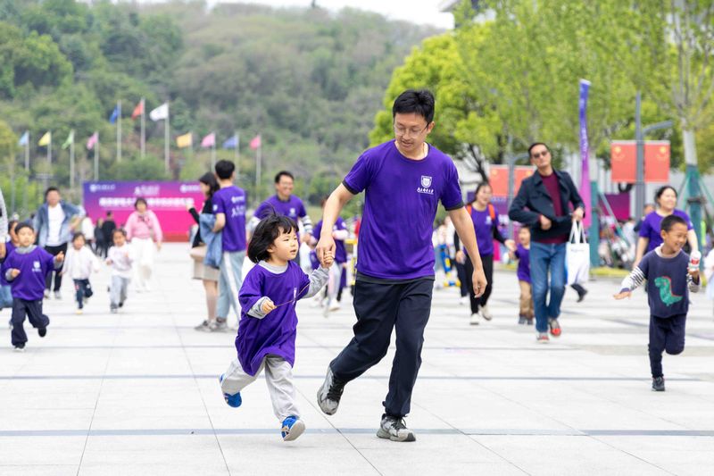 10时40分,叶美兰打响发令枪,校园跑与亲子跑接续展开。4.2公里的赛道上,校领导、师生、校友、教工“小柚子”及江苏电信、江苏移动、江苏联通、江苏铁塔、江苏邮政、联通物联、华为、中兴、江苏省互联网协会、嘉环科技、广东电信设计院南京分院、江苏省通信服务等企业代表奋力奔跑,共绘“同心圆”。