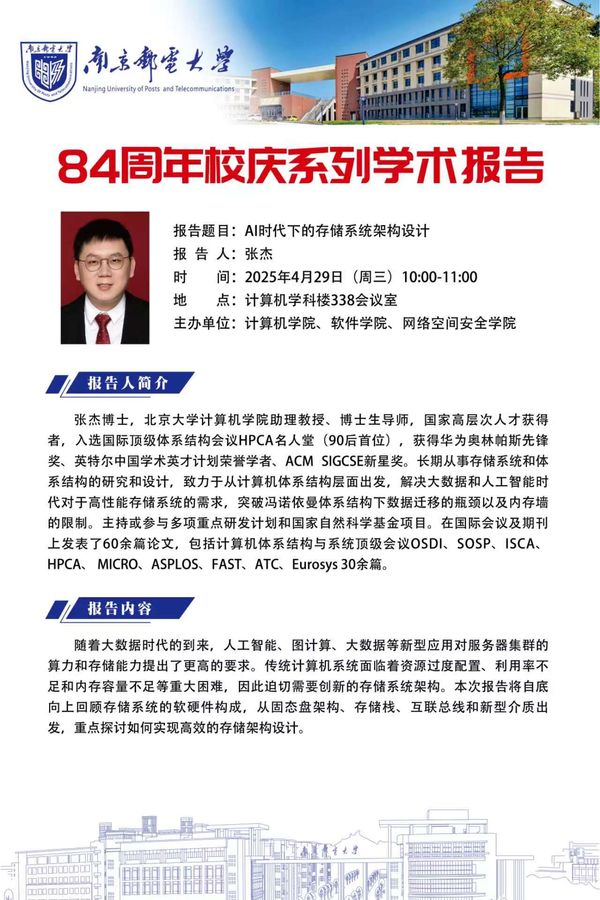 北京大学博士生导师张杰学术讲座:AI时代下的存储系统架构设计