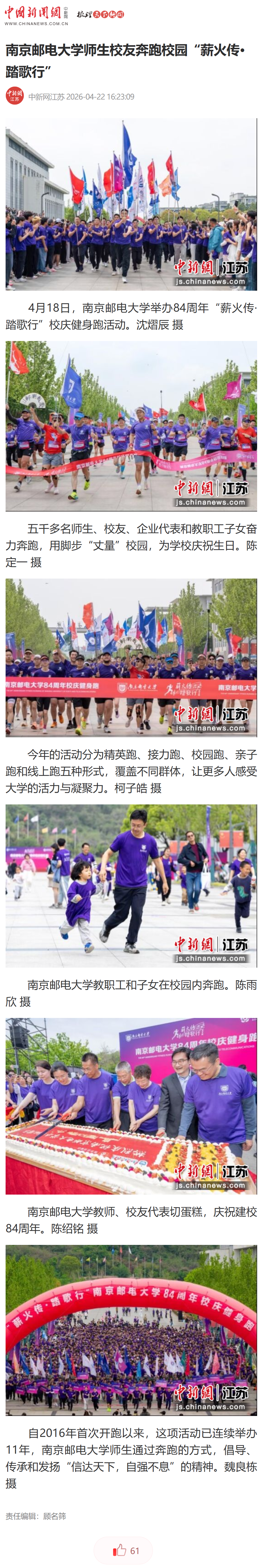 【中国新闻网】南京邮电大学师生校友奔跑校园“薪火传·踏歌行”