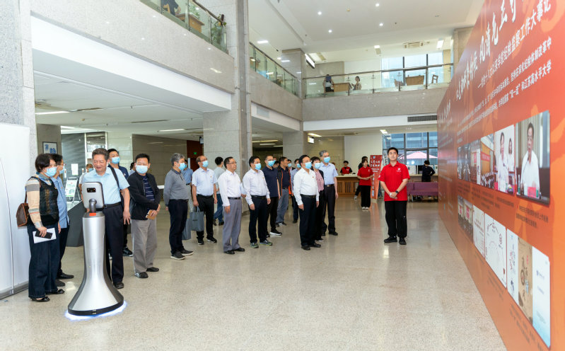 值得一提的是,展出现场还有一个特殊的机器人讲解员。它既可以讲解展出,还可以互动答题,回答师生关于党史、校史和廉洁文化的相关知识。此外,展出现场还有自制沙画视频展播、Pad答题等,这是将信息学科特色赋能廉洁文化建设的有效尝试。