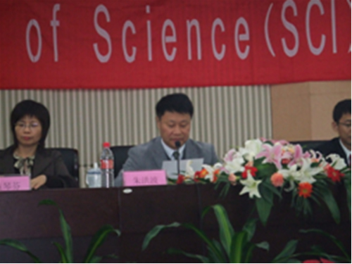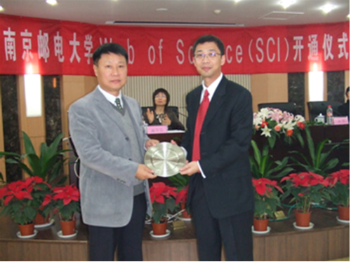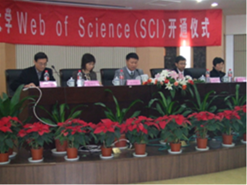 2008年11月14日下午2:30,图书馆在科技大楼一楼演讲厅举办了名为《推动创新激励发现勇攀高峰——南京邮电大学Web of Science(SCI)开通仪式暨学术报告会》。朱洪波副校长、科技处施琴芬处长、研究生部王辛京副主任、汤姆森路透科技集团的刘煜总经理以及图书馆的严彬馆长、柴晓娟副馆长、钱军副馆长出席了开通仪式。仪式由严彬馆长主持。