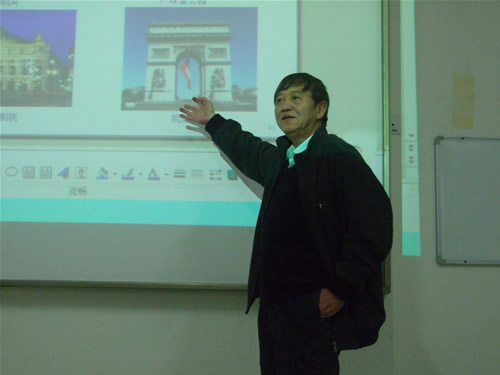 刘院长从中法关系入手,高度评价了中法人民之间源远流长的深情厚谊,详细介绍了江苏省省政府与法国阿尔萨斯大区的友好往来。接着他以详实的数据及图片资料介绍了法国的自然概况,经济发展与科技实力。刘院长向观众展示了一组组赏心悦目的图片,图文并茂、娓娓而谈,展现了“浪漫法兰西”的精髓——法国悠久的历史文化底蕴与浓厚的人文主义情怀。法国美丽的自然风光、风格多样的建筑,每一道风景、每一件作品都讲述着故事;法国璀璨的美术、文学、音乐等文化艺术瑰宝,充分体现了自由、民主、博爱的人文主义精神。