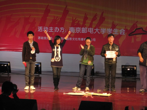 经过海选、初赛、复赛的层层选拔,16名成功晋级的选手站上了决赛的舞台,来自海外教育学院的陆梦吉同学成功入围。整场比赛精彩纷呈,各路选手才艺尽显。在当晚进行的四个比赛环节中,陆梦吉先后以经典歌曲《hero》和中英文串烧歌让全场观众听得如痴如醉,也赢得了在场评委的好评与青睐,最终夺得08年度南京邮电大学十佳歌手大赛的冠军。