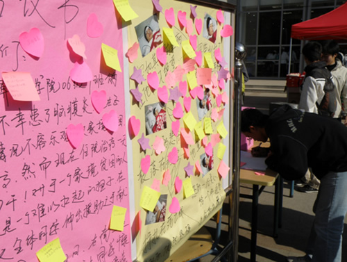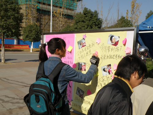 在“祈福板”上贴上自己的祝福