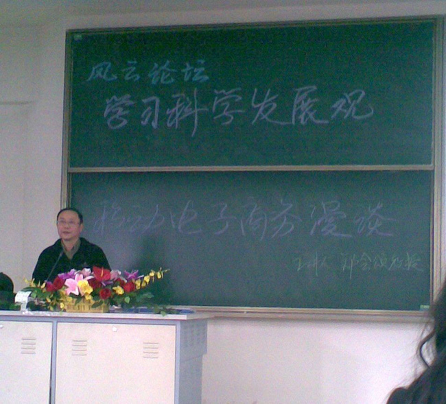3月26日下午仙林教二315座无虚席,经济与管理学院郑会颂教授做客“风云论坛”,漫谈移动电子商务的科学发展。