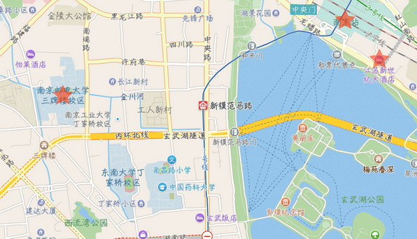 (2)新世纪大酒店(地址:南京市玄武区龙蟠路133号,地铁1号线南京站4号口东行500米;电话:86888888)