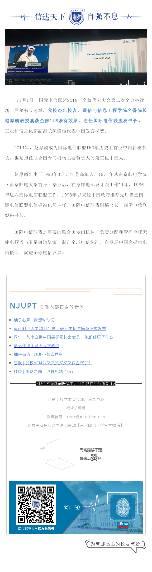 快讯|热烈祝贺我校杰出校友赵厚麟全票连任国际电信联盟秘书长!