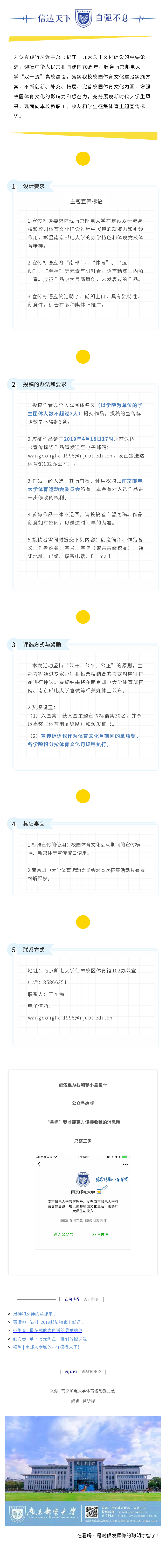 | 标语征集 | 在南邮运动场最醒目的位置,秀你最个性的宣言 |