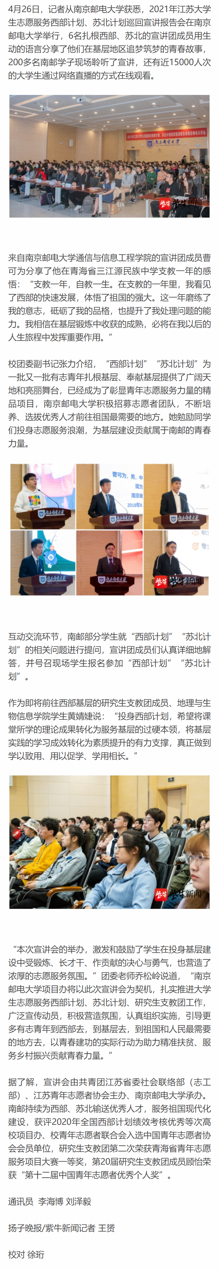 【扬子晚报客户端】到祖国需要的地方去!这所高校大学生组团志愿服务西部、苏北