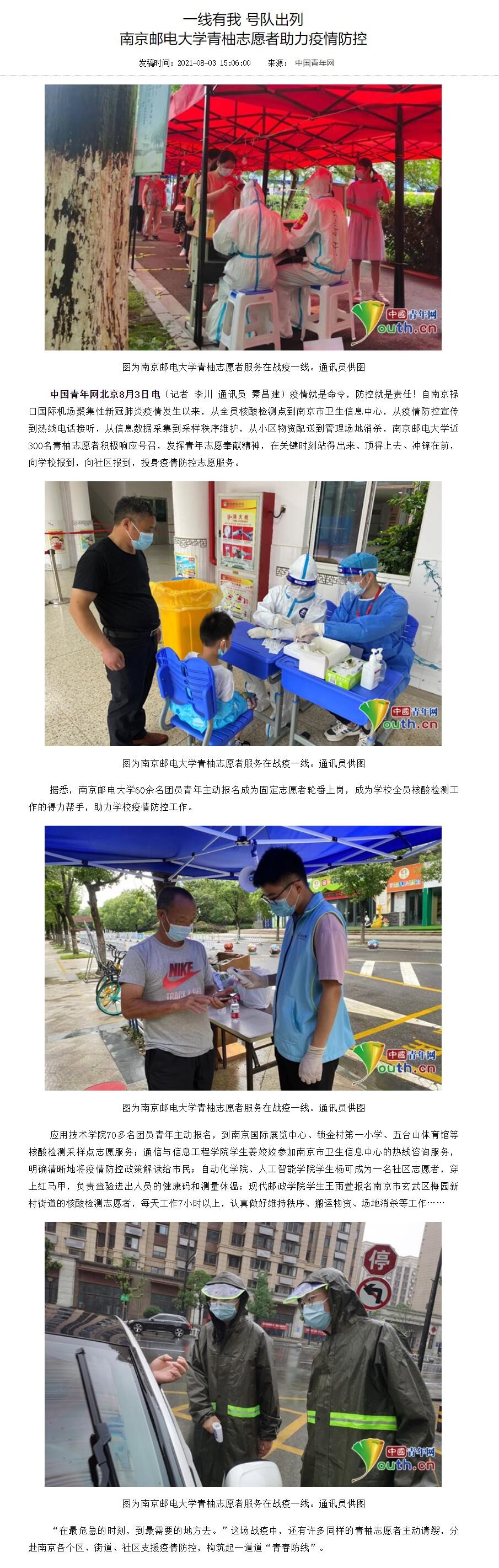 【中国青年网】一线有我 号队出列 南京邮电大学青柚志愿者助力疫情防控