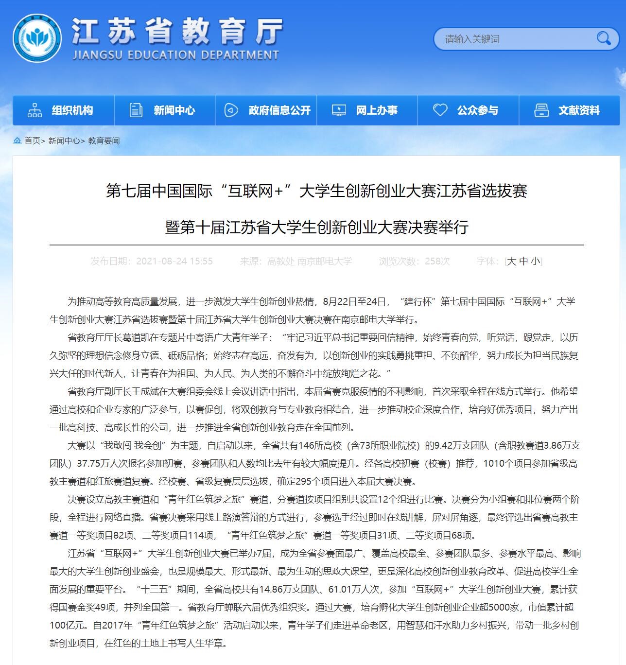 【省教育厅官网】第七届中国国际“互联网+”大学生创新创业大赛江苏省选拔赛 暨第十届江苏省大学生创新创业大赛决赛举行