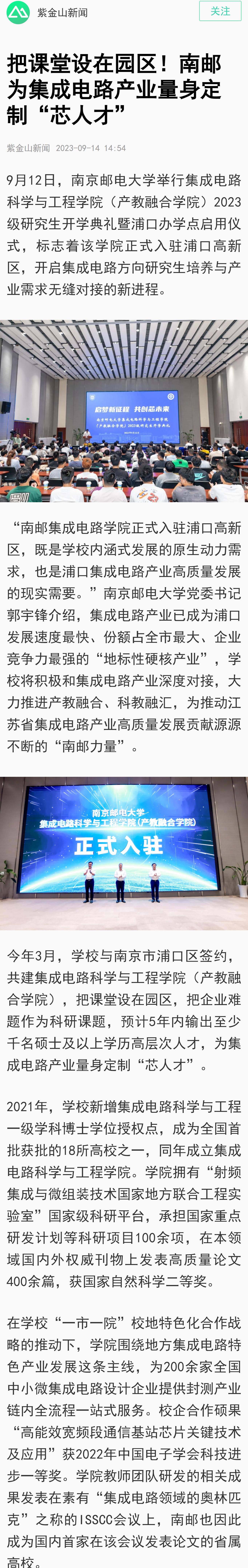 【南京日报客户端】把课堂设在园区!南邮为集成电路产业量身定制“芯人才” |