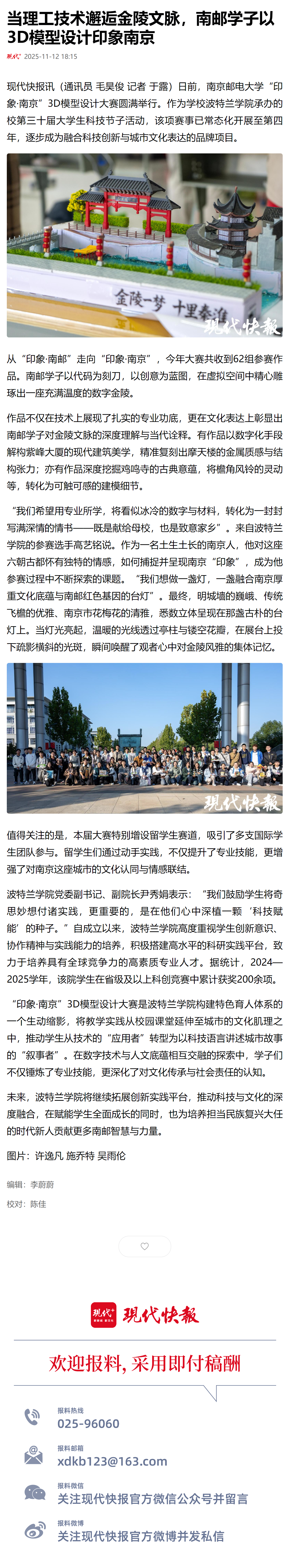 | 【现代快报全媒体】当理工技术邂逅金陵文脉,南邮学子以3D模型设计印象南京 |