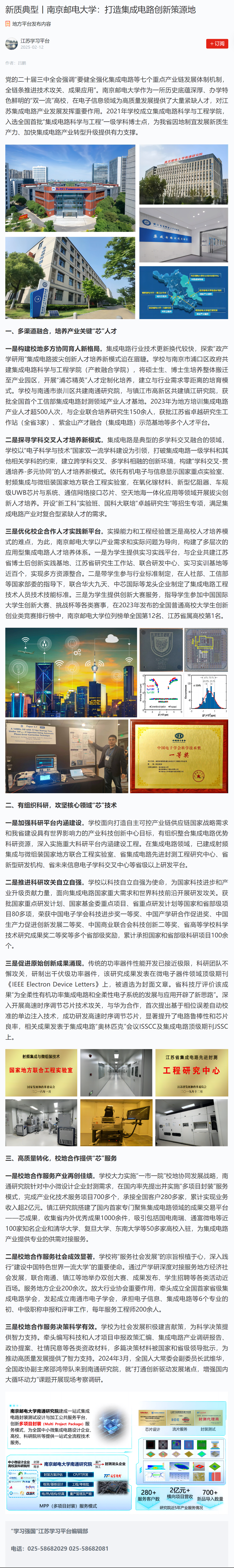 | 【学习强国】新质典型丨南京邮电大学:打造集成电路创新策源地 |