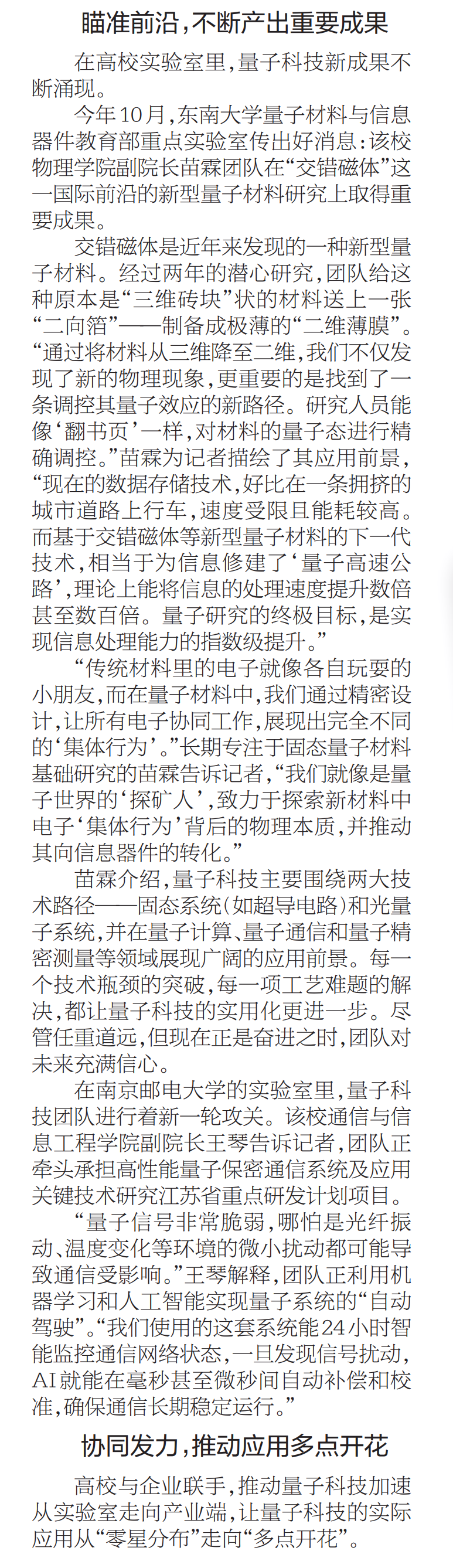 | 【新华日报】做量子世界“探矿人” 促量子应用“多点开花” |