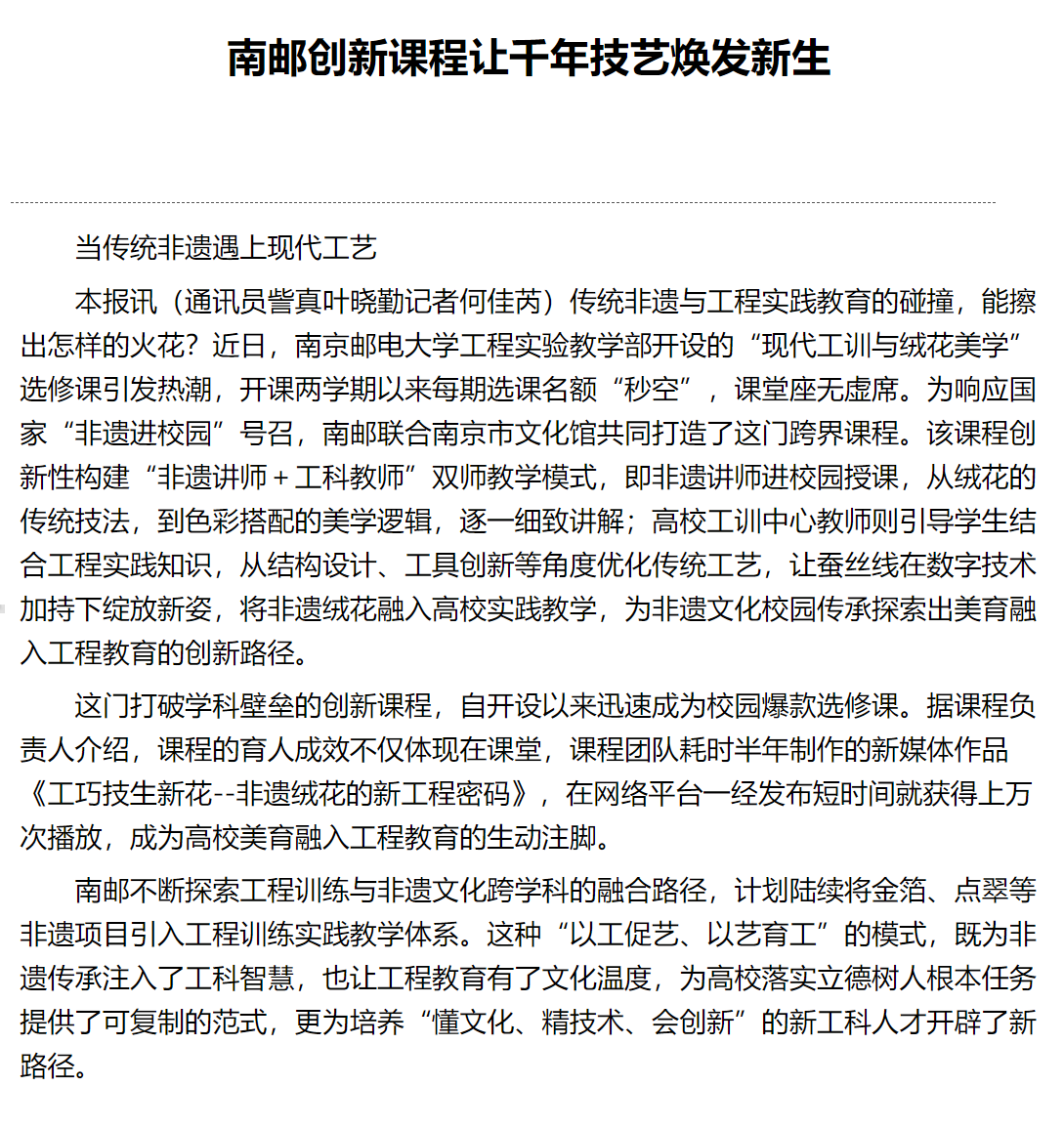 | 【江苏科技报】南邮创新课程让千年技艺焕发新生 |