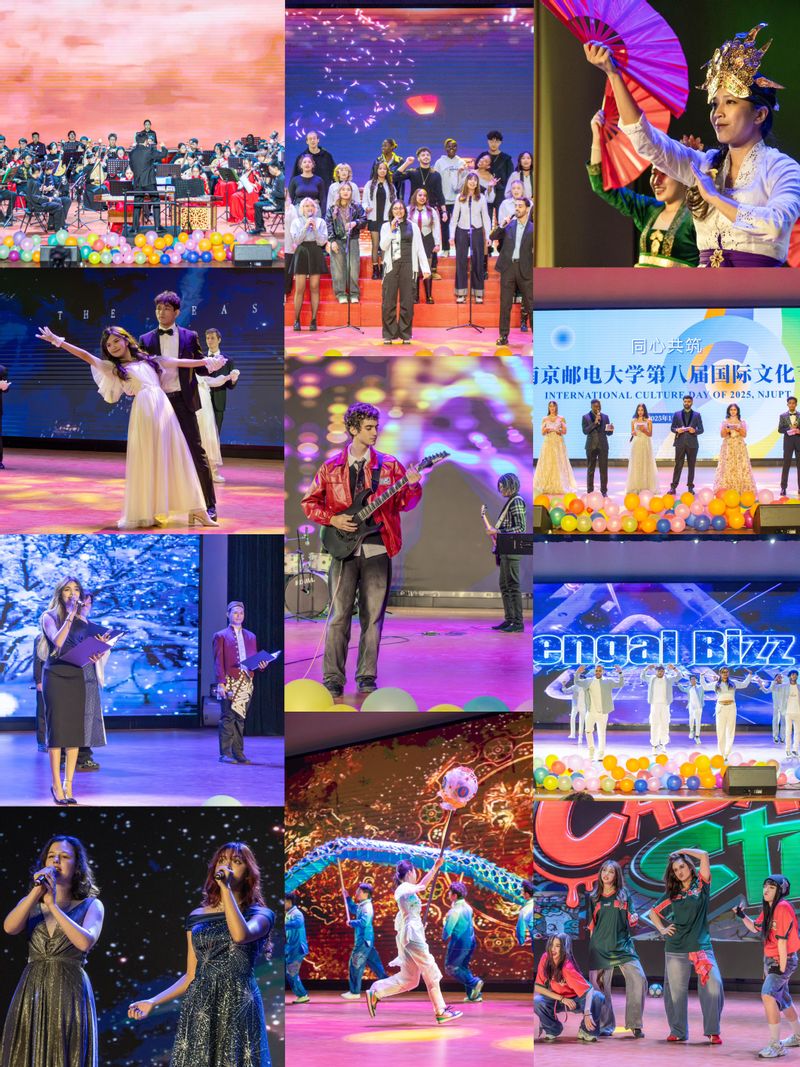 第八届国际文化节文艺汇演 安恒青春剧场外,来自中国、俄罗斯、乌兹别克斯坦、印度尼西亚、摩洛哥、哈萨克斯坦、孟加拉、沙特阿拉伯、埃塞俄比亚、巴基斯坦、柬埔寨等十余个国家的文化帐篷依次排开,师生们穿梭其中品尝地道异国美食,试穿多彩民族服饰,参与趣味互动游戏。各国学生代表身着传统盛装表演歌舞,动感的节奏与欢快的旋律交织,形成一幅绚丽的国际友谊画卷。